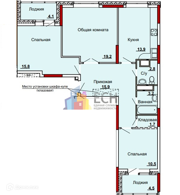 Общая площадь 82 м2