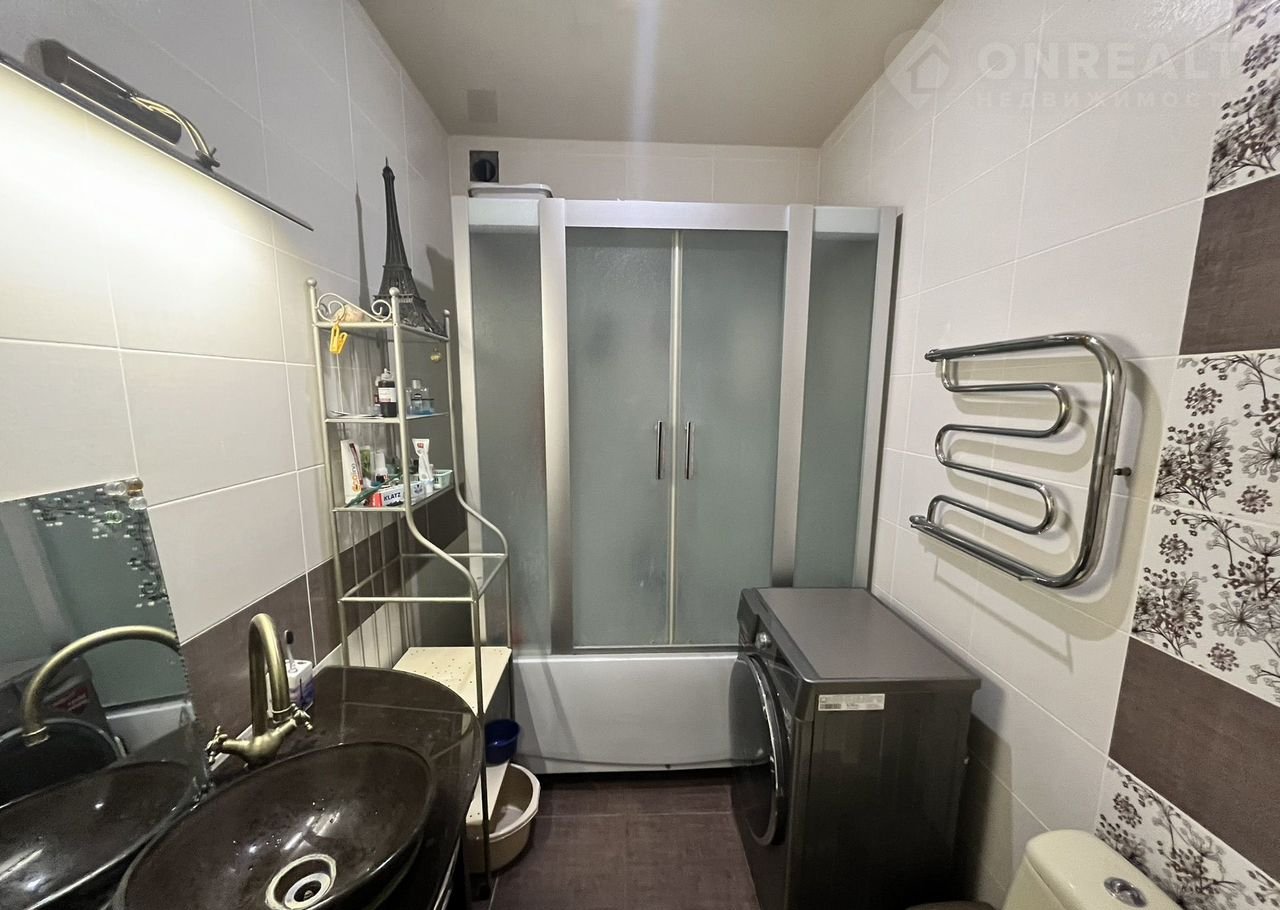 • Современный санузел 4 кв.м , отделанный дорогим керамогранитом, с ванной и душевой кабиной с гидромассажем, стиральной машиной