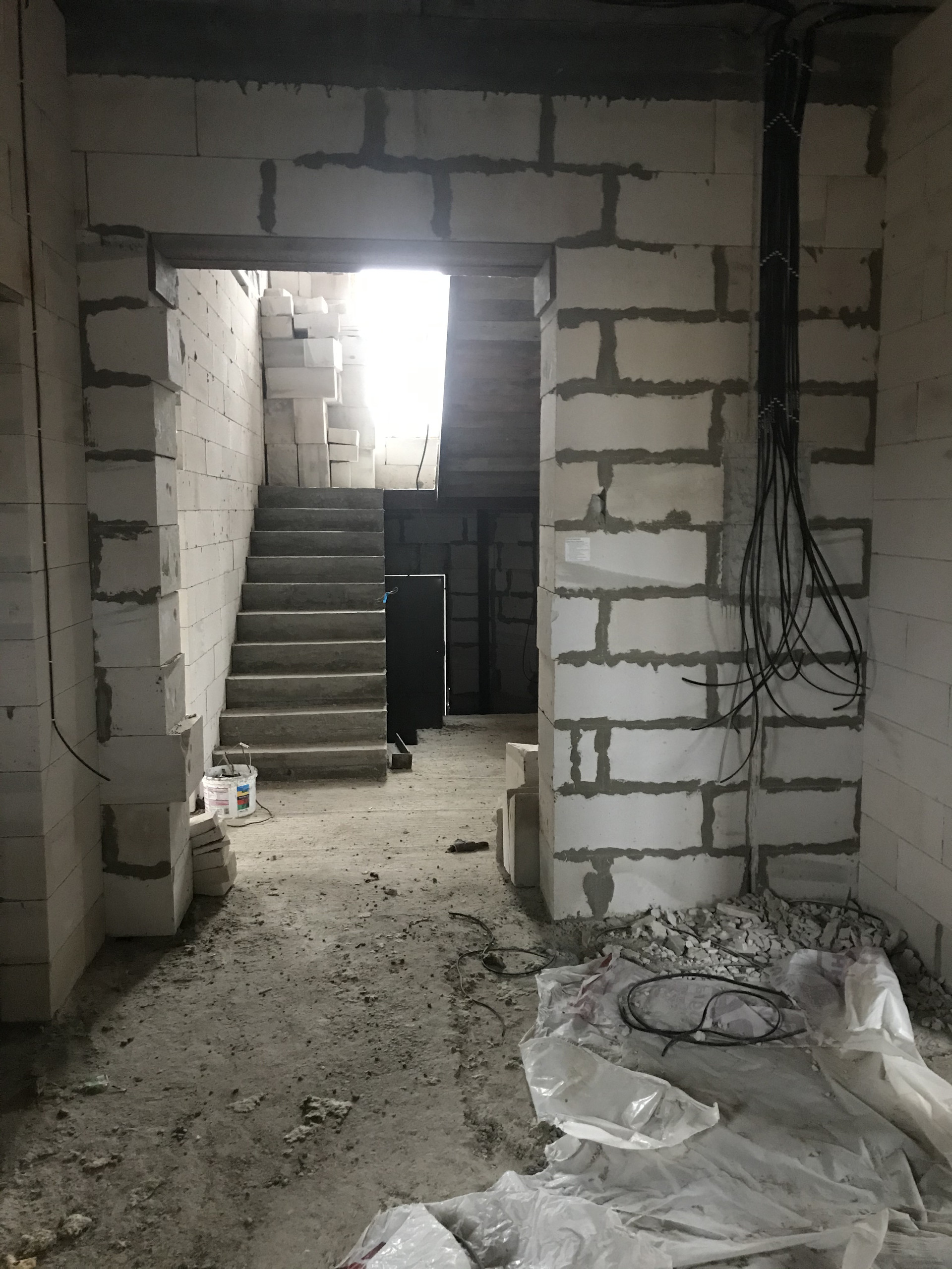 Большие просторные прихожие и холлы. Установлена надежная железобетонная лестница .
