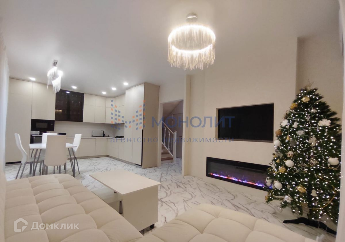 Продаётся двухэтажный коттедж по адресу: Нижний Новгород, сельский посёлок Новинки, улица Нагорная. Светлый, уютный, очень тёплый, комфортный для проживания коттедж, построенный с использованием современных строительных технологий, расположен на прямоугольном участке 850 кв.м. Включает в себя четыре спальни (одну на первом этаже и три на втором), просторную кухню-гостиную, холл первого этажа, холл второго этажа, и два санузла (на первом и втором этажах). Интерьер выдержан в приятных светлых тонах. Организована система водоочистки. На первом этаже - тёплый пол. Утепление стен, пола и потолка - 200 мм. Отделка фасадов - блок-хаус (имитация бруса). Полностью готов для проживания. Качественный функциональный кухонный гарнитур включает в себя следующие встроенные элементы: