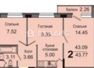 Продается 2-комнатная квартира, 43.09 м2, 2-я Дорожная улица, 3