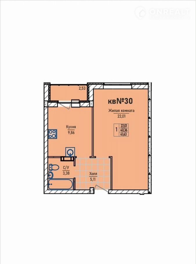 Однокомнатная квартира спланирована с учетом эргономики жилого пространства: