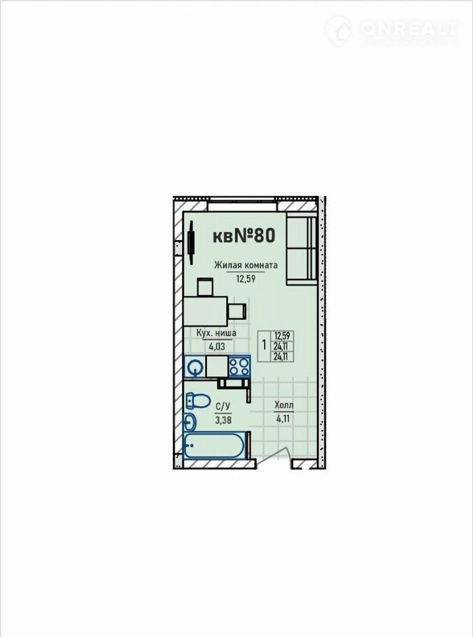 Квартира-студия спланирована с учетом эргономики жилого пространства: