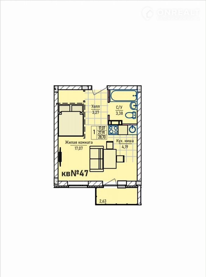 Квартира-студия спланирована с учетом эргономики жилого пространства: