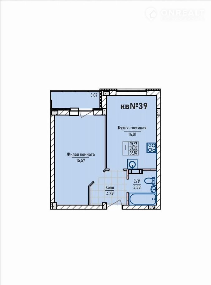 Однокомнатная квартира спланирована с учетом эргономики жилого пространства: