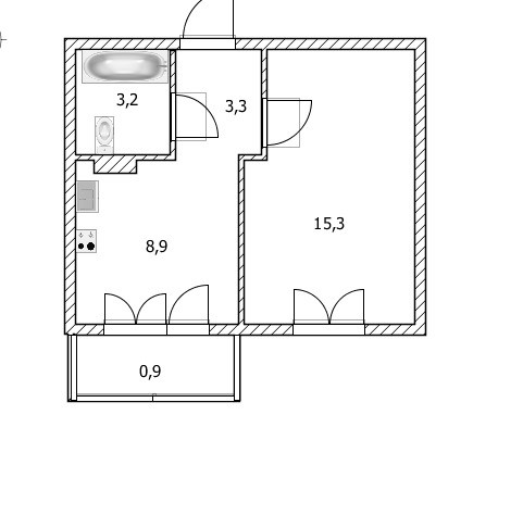 Жилая площадь 15.3 м2