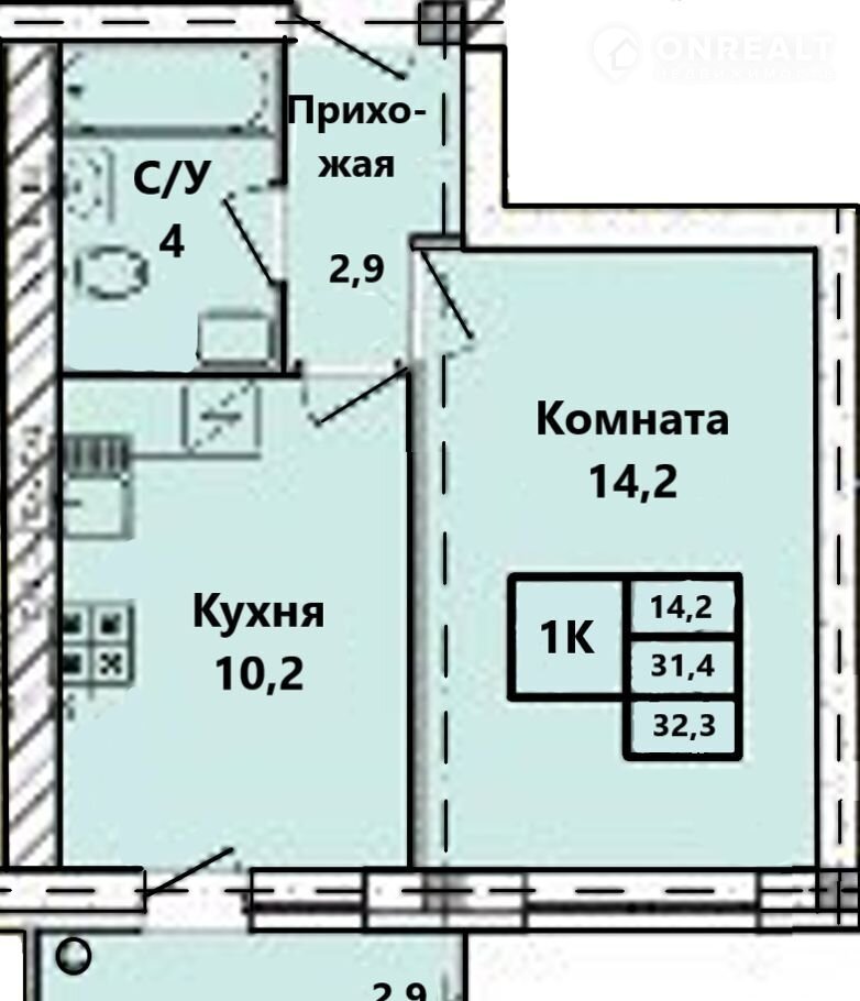 Общая площадь 31.4 м2