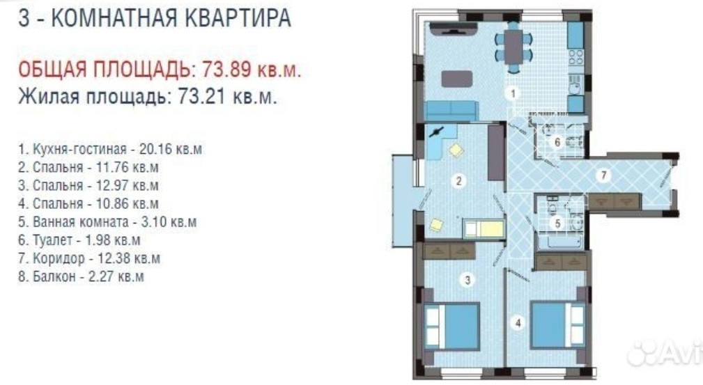 Общая площадь 73 м2