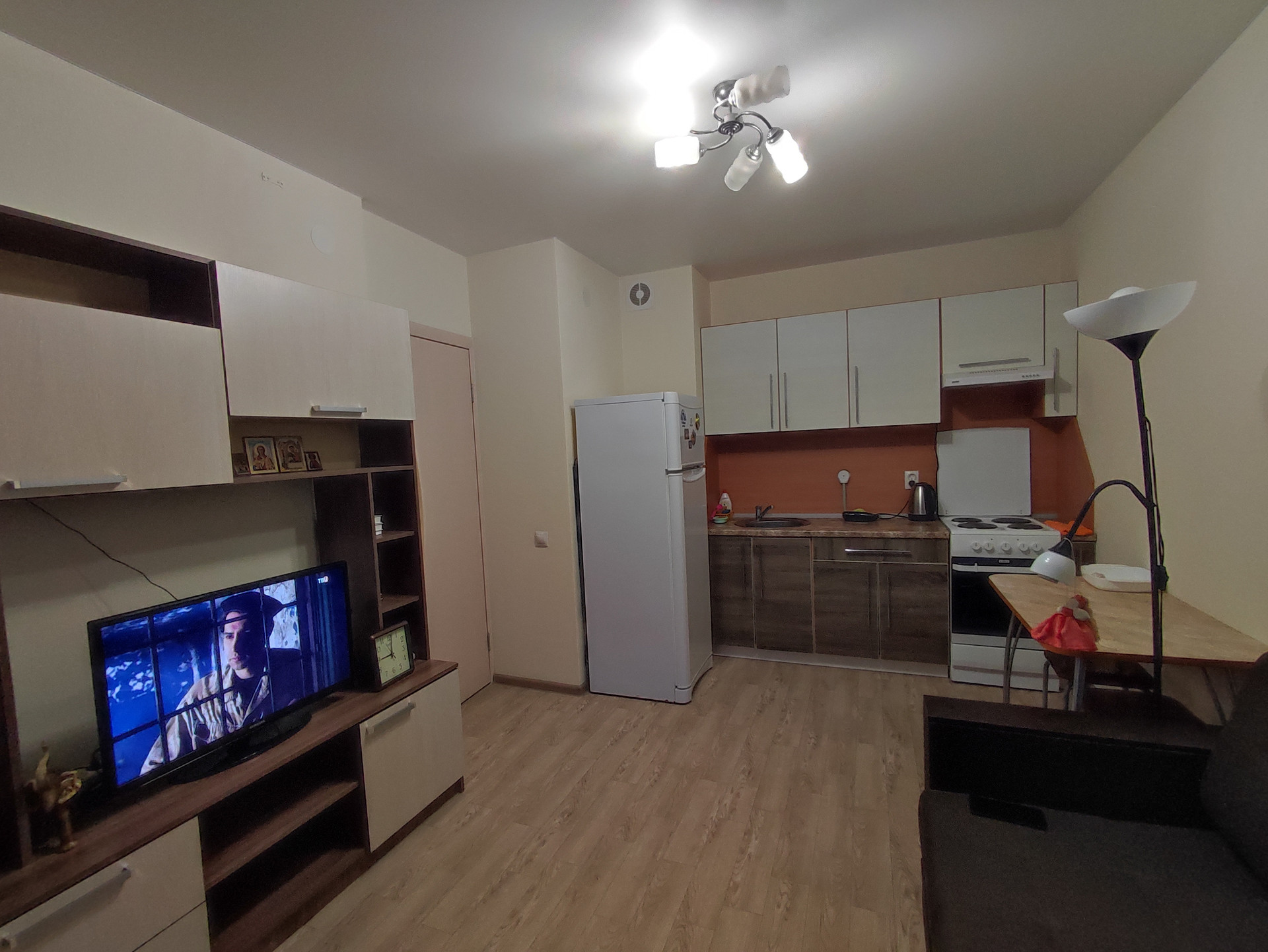 Формат квартиры 1+ обозначает большую кухню-гостиную и отдельную полноценную спальню. С кухни выход на полностью остекленную лоджию. В доме имеется лифт на 13 персон.