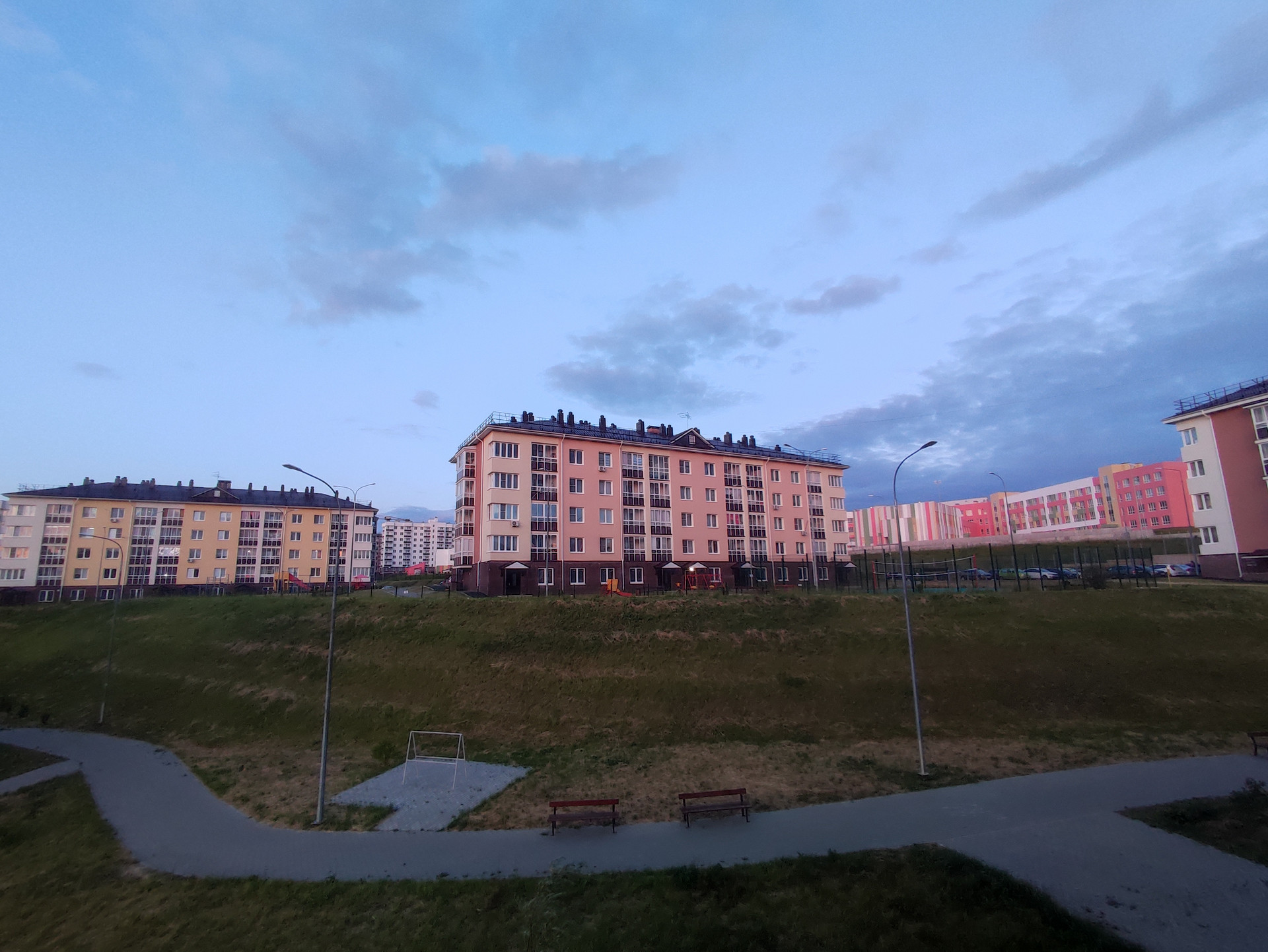 В ЖК уже построены и функционируют детский сад и школа. Отличное благоустройство — множество детских и спортивных площадок, стадион, место для прогулок и т. д. Вокруг ЖК природа и истый воздух.