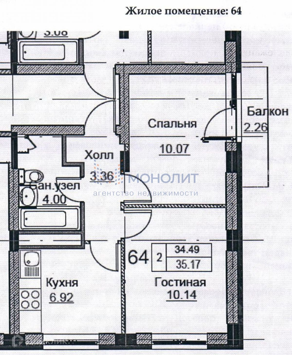 Площадью - 35,4 кв. м.