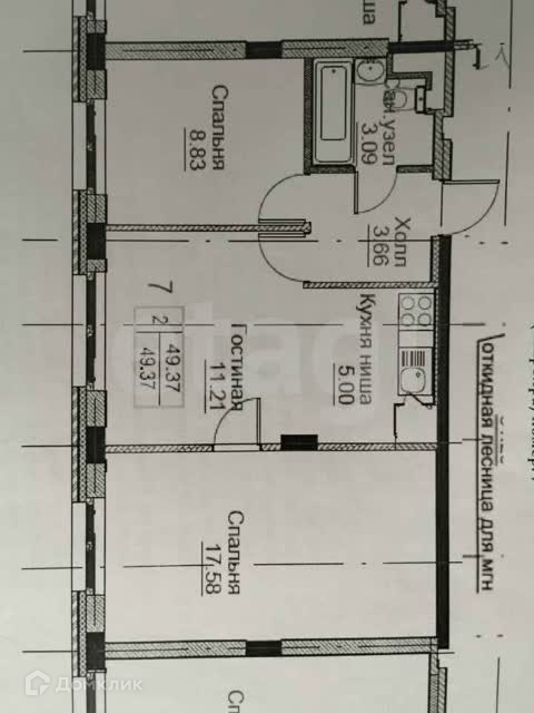 Общая площадь 49.3 м2