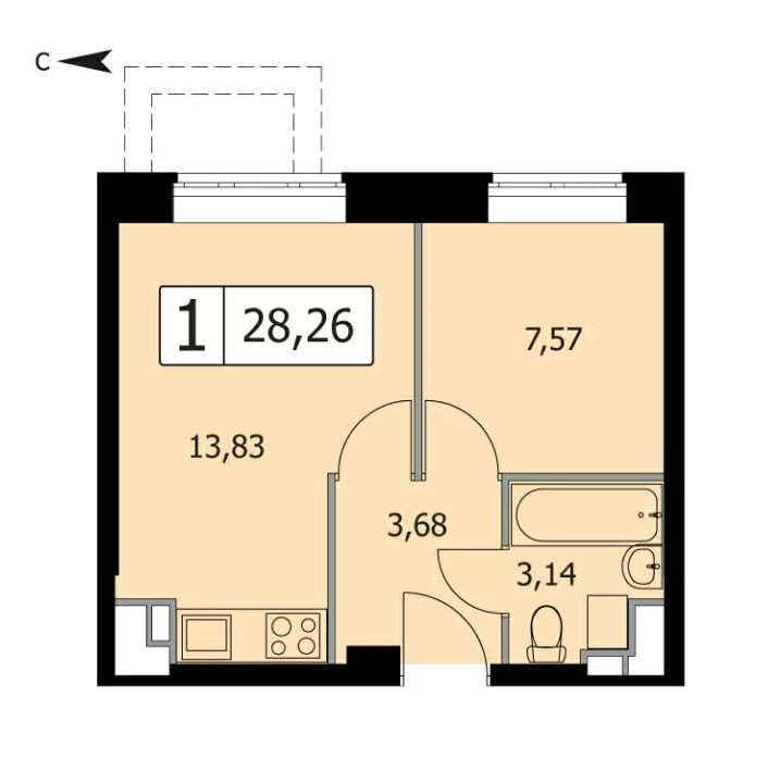 Общая площадь 28.2 м2