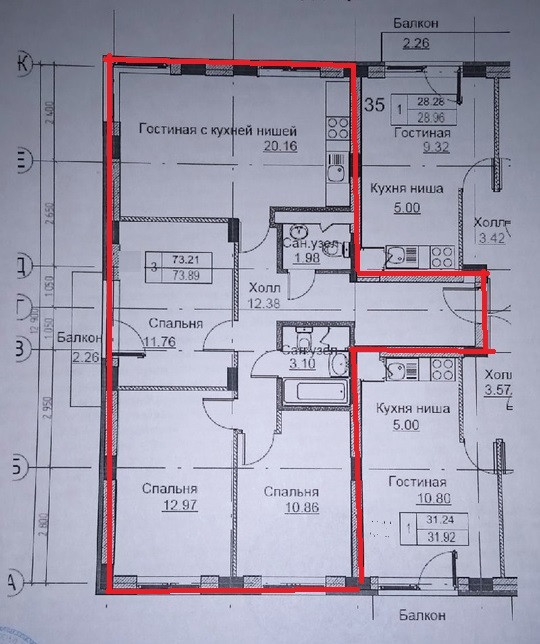 Жилая площадь 35.6 м2