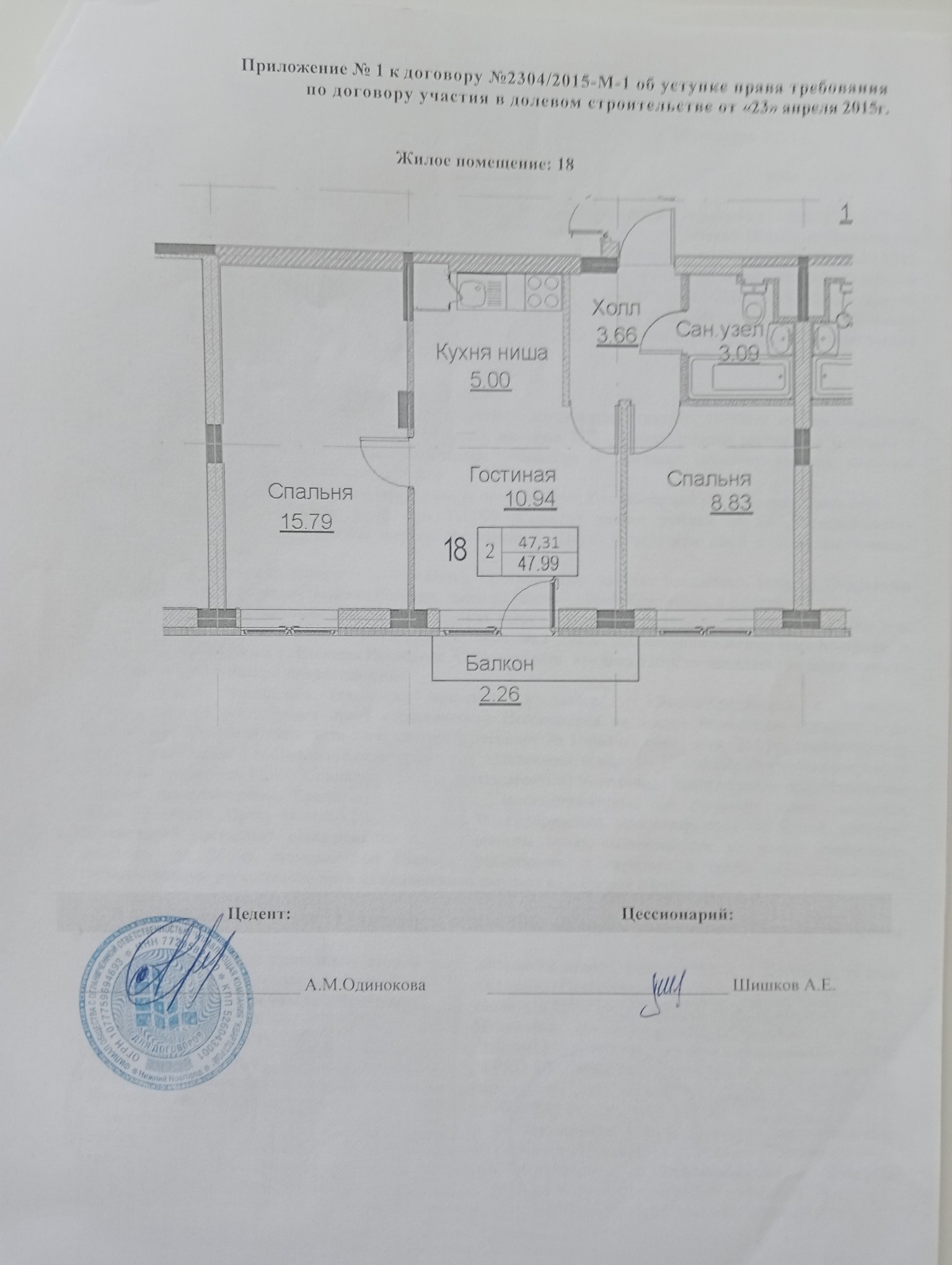 Общая площадь 47.3 м2