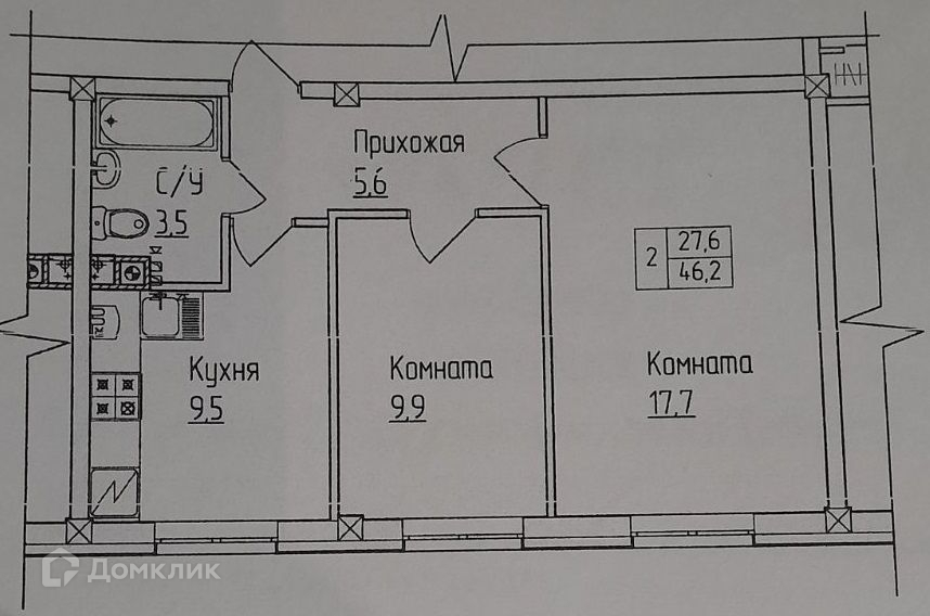Продаётся 2 комн. квартира в ЖК Окский Берег по ул. Гагарина д.16 корп. 1, площадью 46,2, жилая 27,6 кв. м комнаты 17,7 + 9,9 кв. м., кухня 9,5 кв. м, на 1 этаже 3-х этажного дома 2016 года постройки.