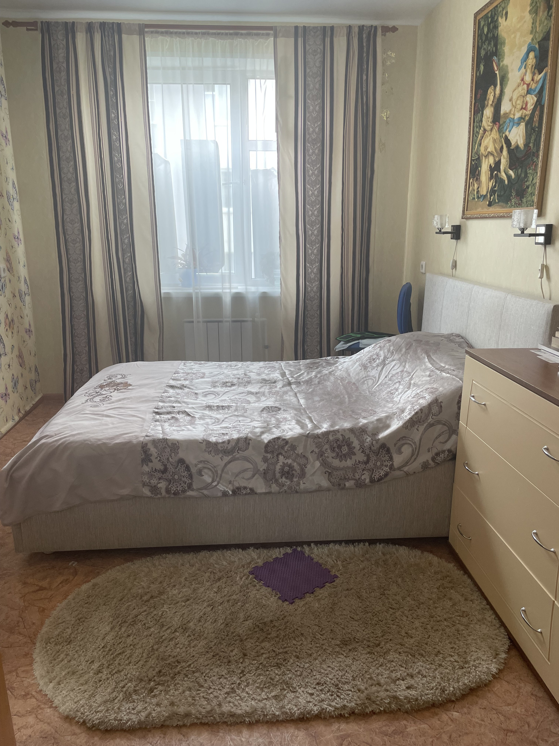 - Напольное покрытие - качественный и плотный линолеум.