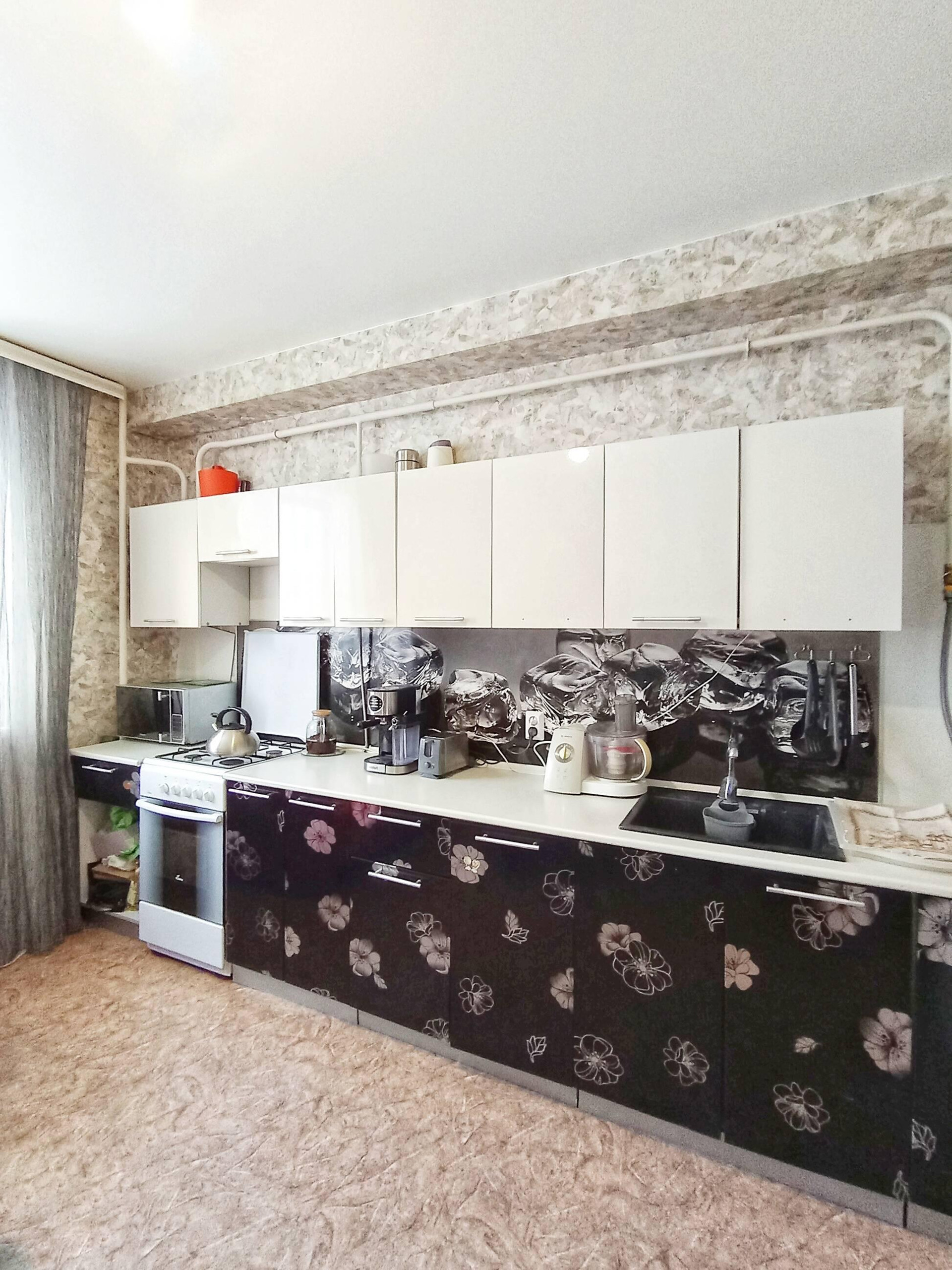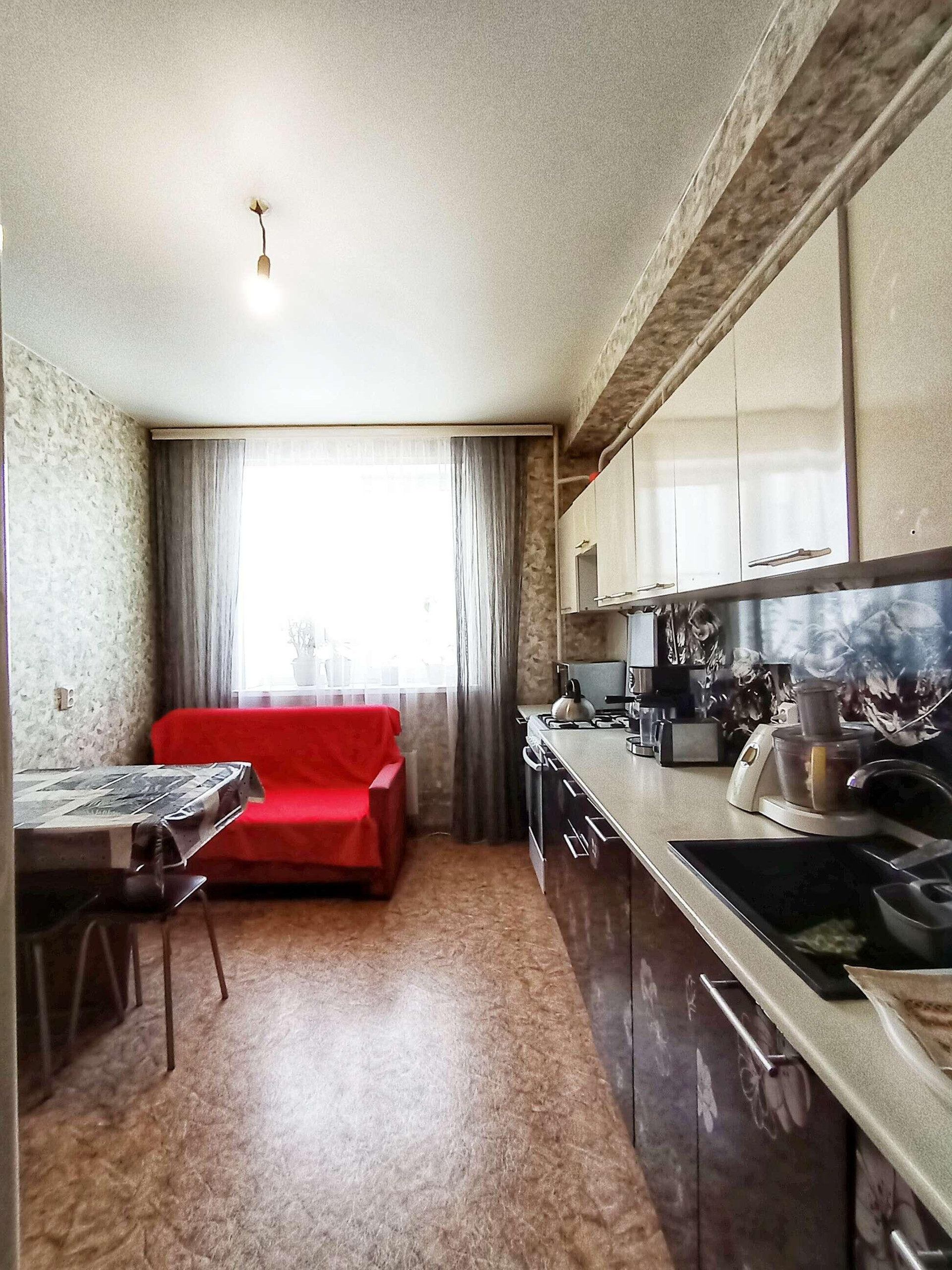 Большая кухня 12,2 кв.м., кухонный гарнитур остается, по вашему желанию. Двухконтурный котел позволяет регулировать температуру воды и воздуха в любое время года.
