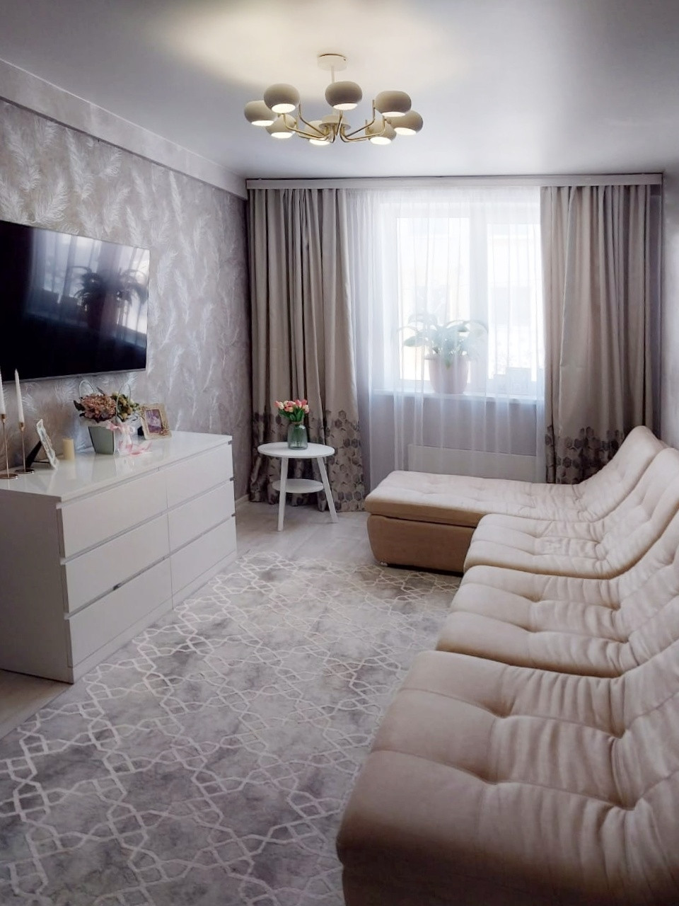 Зал 16,7 кв.м., с современным и стильным ремонтом.
