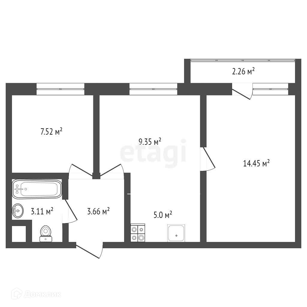 Балкон, лоджия 1 балкон