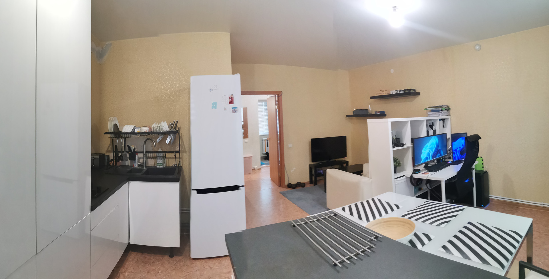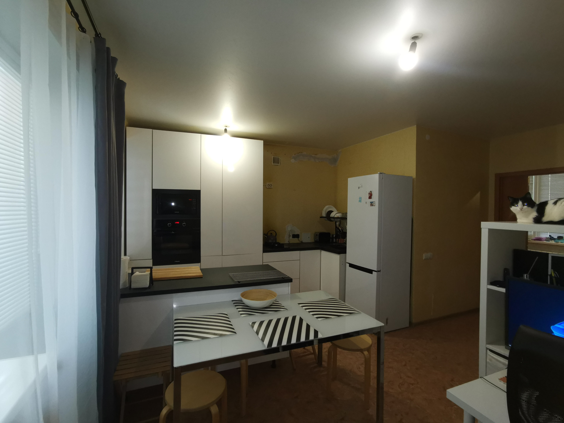 4. В таунхаусе сделан ремонт, можно заехать и жить. В санузлах на 1-м и 2-м этажах ремонт выполнен летом 2022 года: пол и стены выложены плиткой, пол тёплый электрический регулируемый, установлены инсталляции CERSANIT. В комнатах и прихожей на полу - линолеум, на стенах - обои, В тамбуре : пол - плитка, стены - штукатурка. Новым хозяевам остается современный кухонный гарнитур со встроенной техникой. Между этажами бетонные перекрытия.