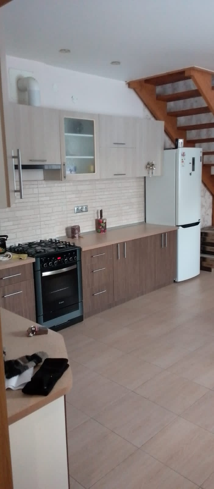 На первом этаже таунхауса расположена прихожая, совмещенный санузел, большая кухня-гостиная. Установлены теплые полы на всей площади 1-го этажа.
