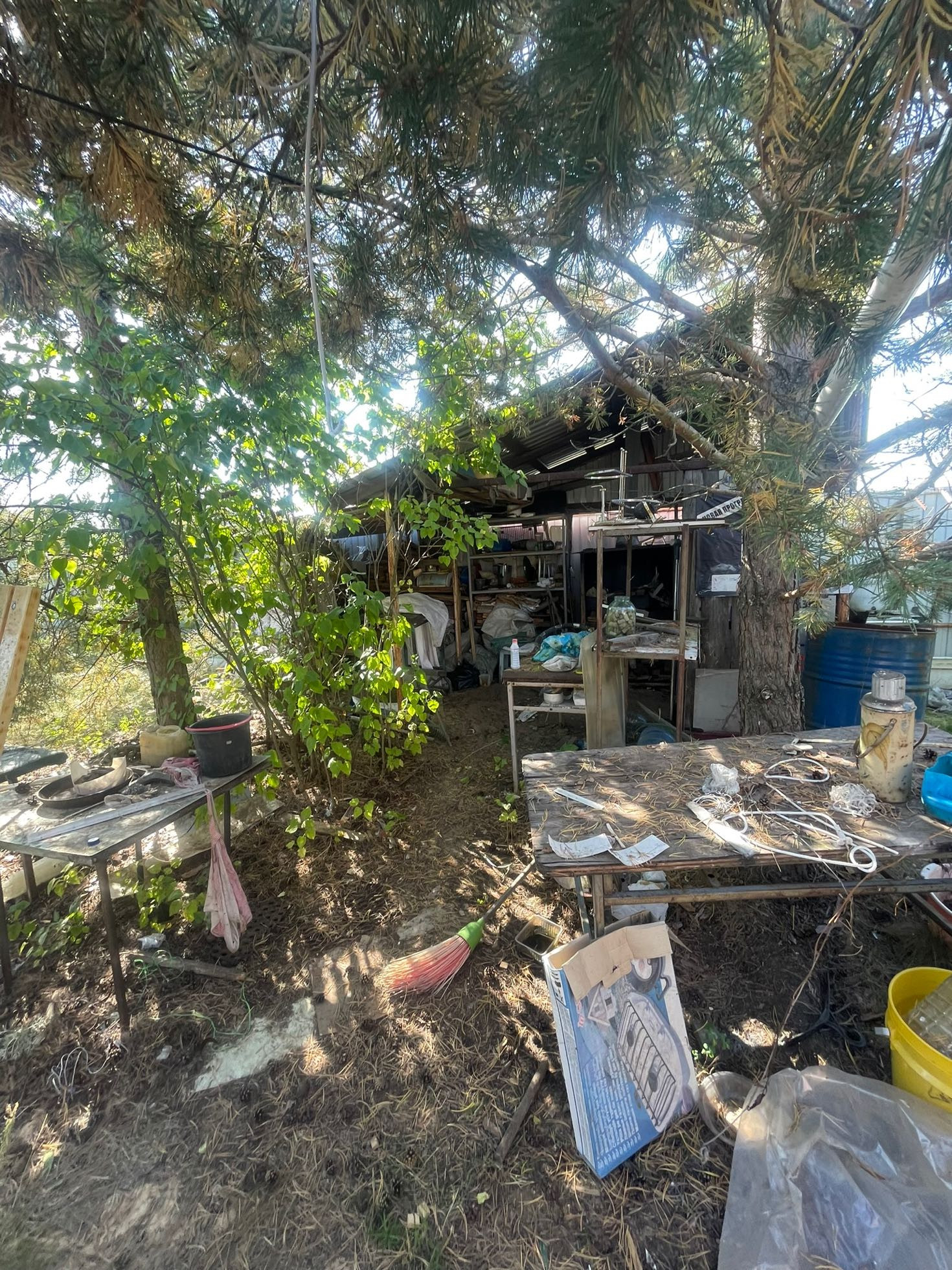 Все размещено с умом. Есть плодово ягодные деревья. На участке 2 больших сарая.
