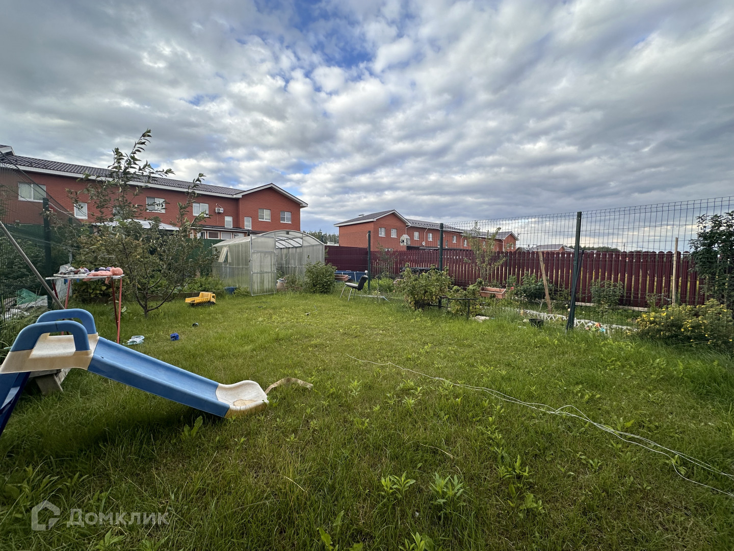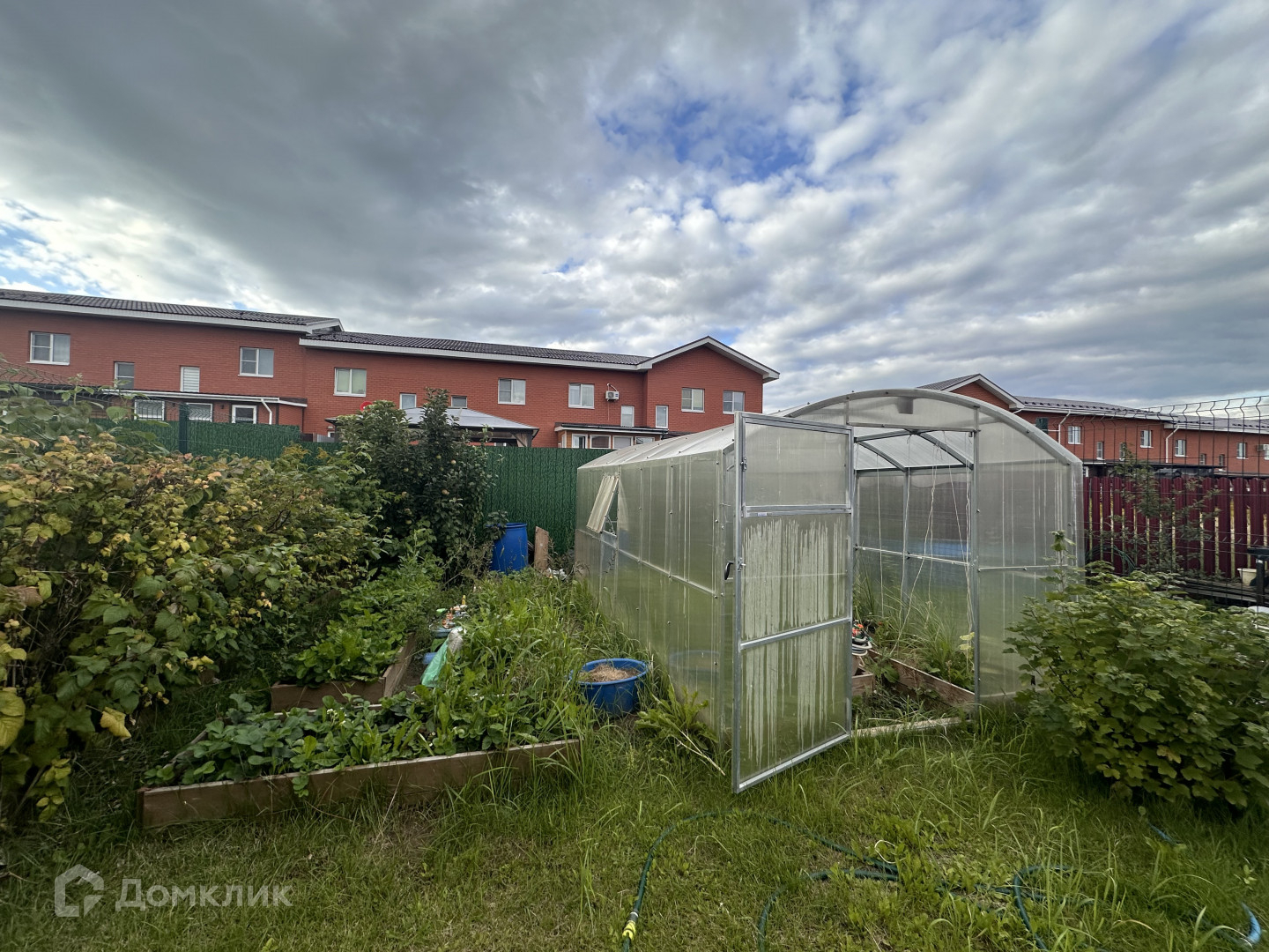На участке имеется теплица из поликарбоната (можно поставить баню, беседку, организовать детскую площадку или сад).