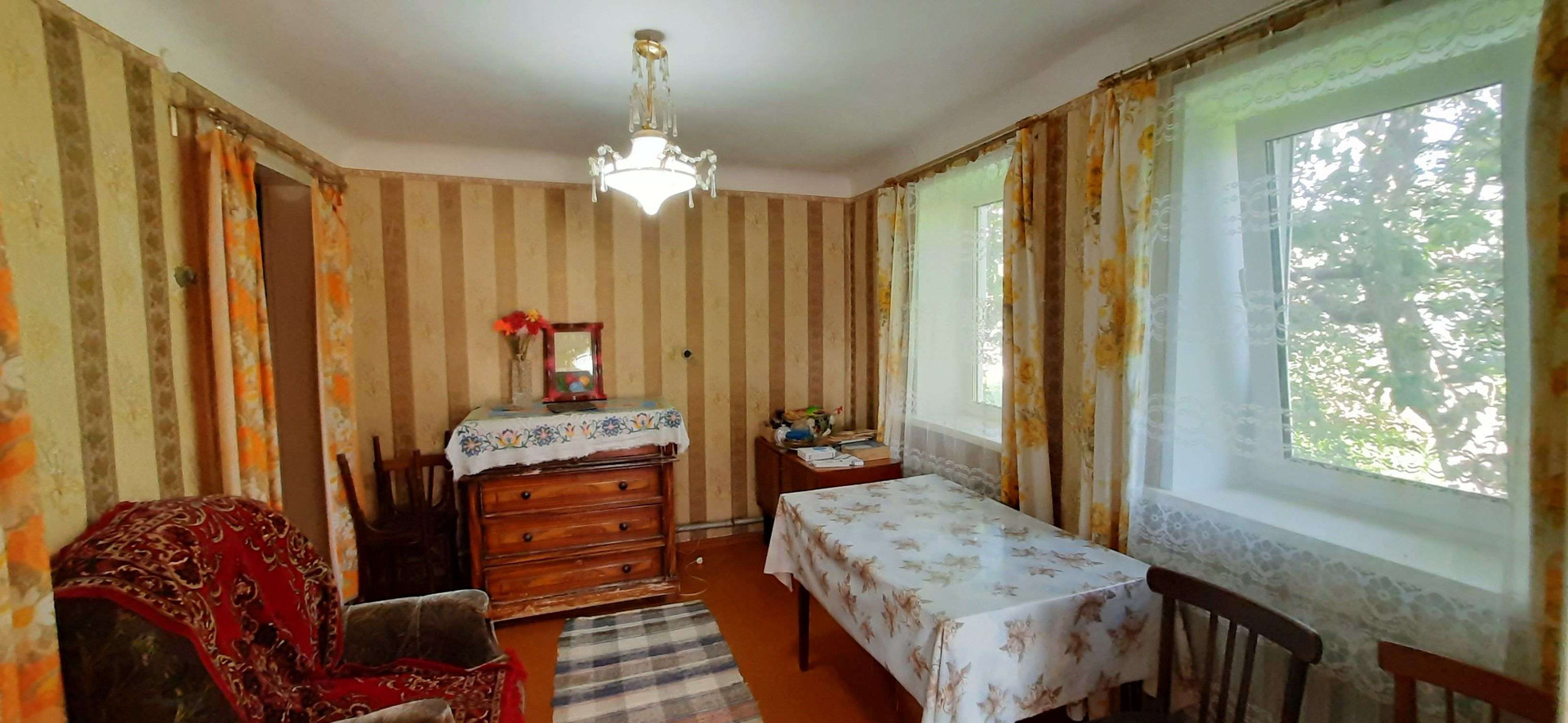 Дом большой, крепкий, полностью пригодный для проживания. В доме три комнаты, кухня, большая веранда. Газ, свет, вода в доме. Есть гараж. Баня требует внимания. Большой ровный участок 12 сот. правильной прямоугольной формы. Под окном шикарный фруктовый сад.