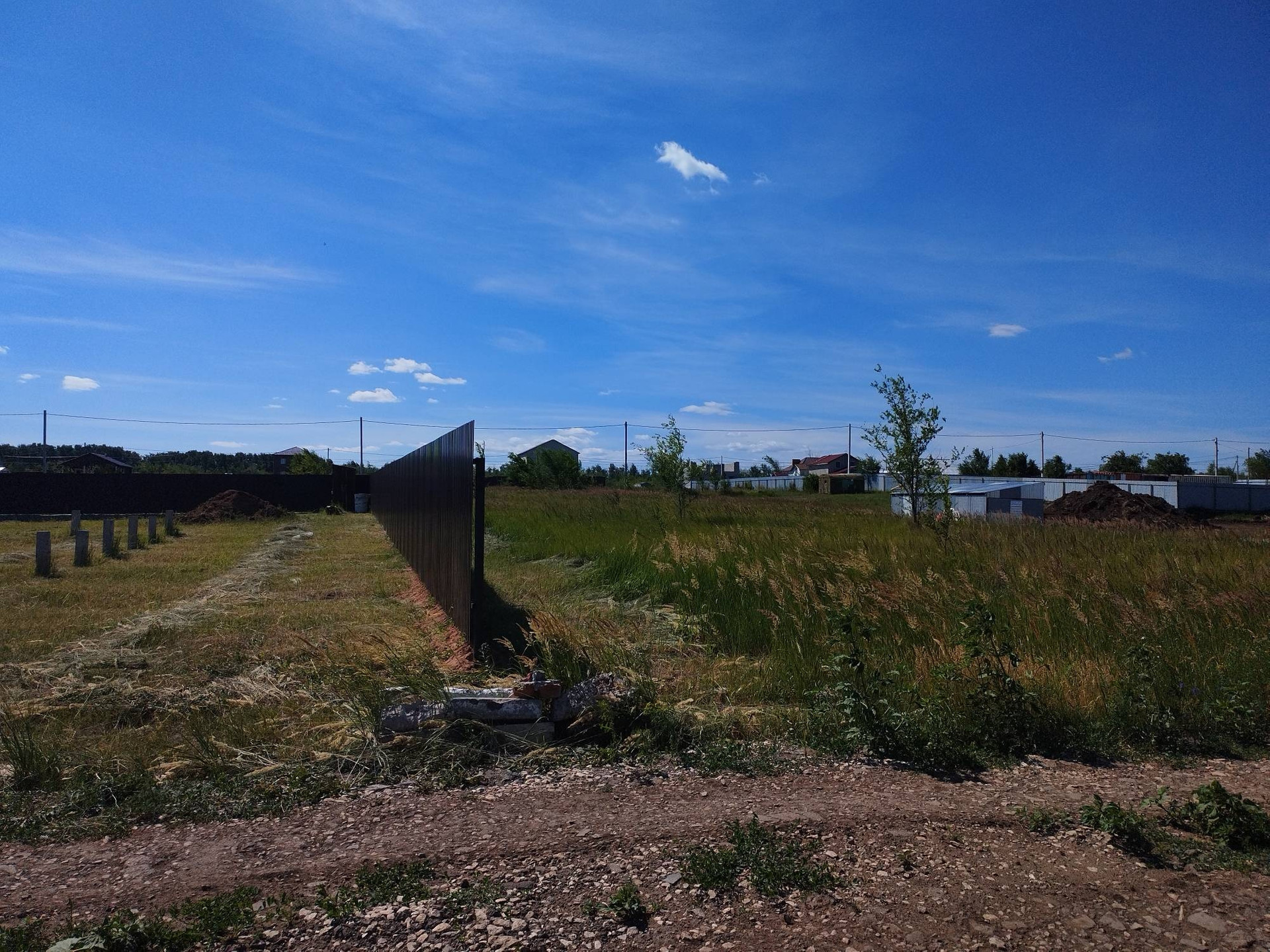 Слева и справа по участку, соседом установлен новый металлический забор.