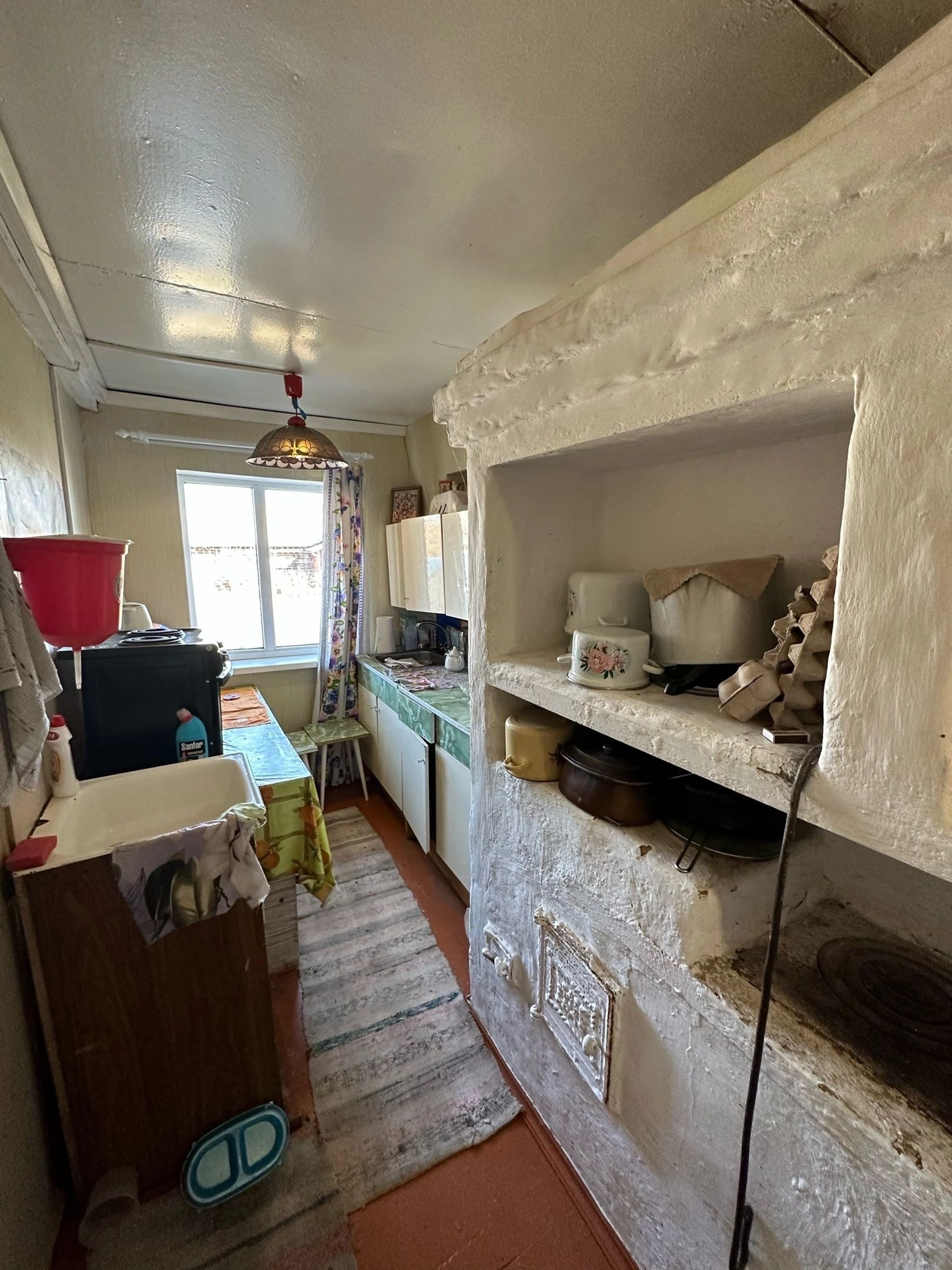 Материал стен: бревно. Фундамент: бетонные блоки. Отопление: печка шведка с лежаком.