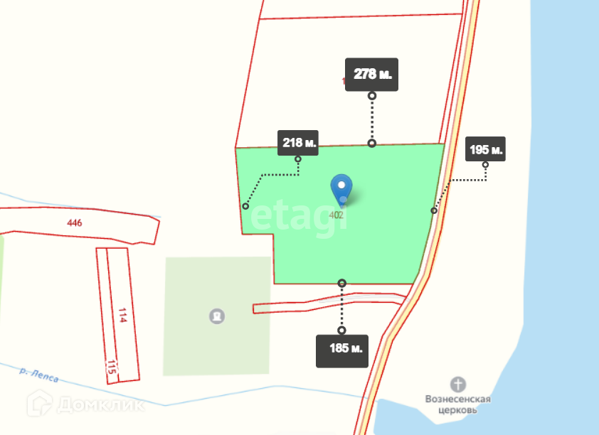 Участок расположен на берегу реки Шексна, что придает ему дополнительную привлекательность и позволяет насладиться прекрасными видами. (130 м. от границы участка до реки)
