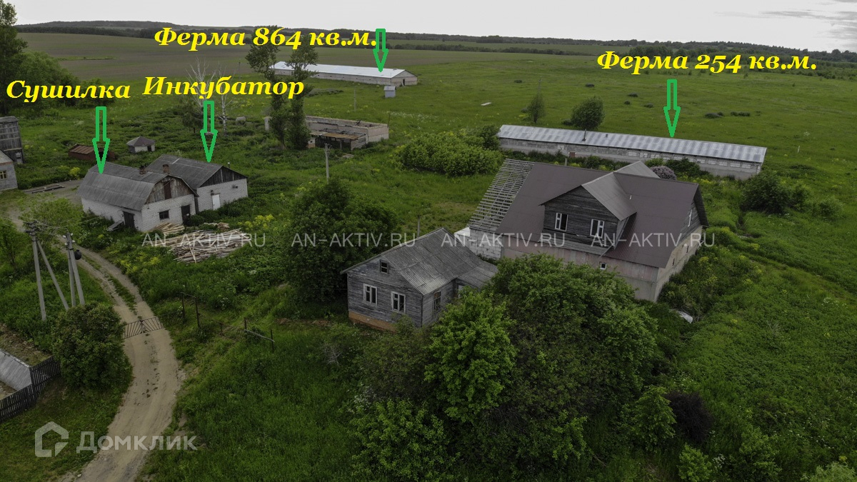 Помещения: на территории располагаются здания: Ферма - 864 кв.м., с возможностью вместимости (4000 - индейки, 6000 бройлеров, 200 бычков). Вторая ферма - 254 кв.м., с возможностью вместимости ( 30 бычков, 1000 индейки, 2000 бройлеров). Убойный цех - 250 кв.м. (двухэтажный), с отоплением и водопроводом. Инкубатор, с отоплением и водопроводом. Сушилка с отоплением и водопроводом. Жилой дом 60 кв.м., бревенчатый.