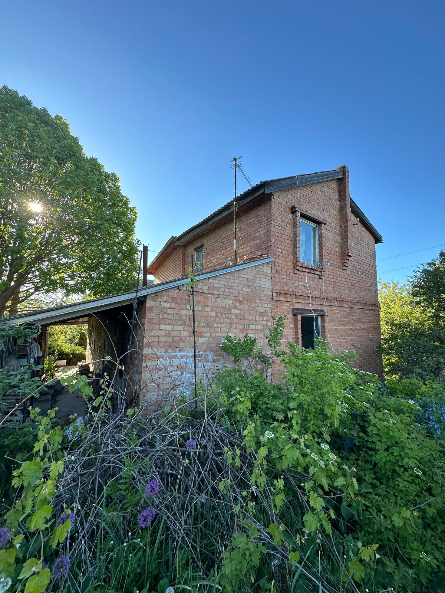 На фото видно состояние участка и дома внутри (требуется ремонт)