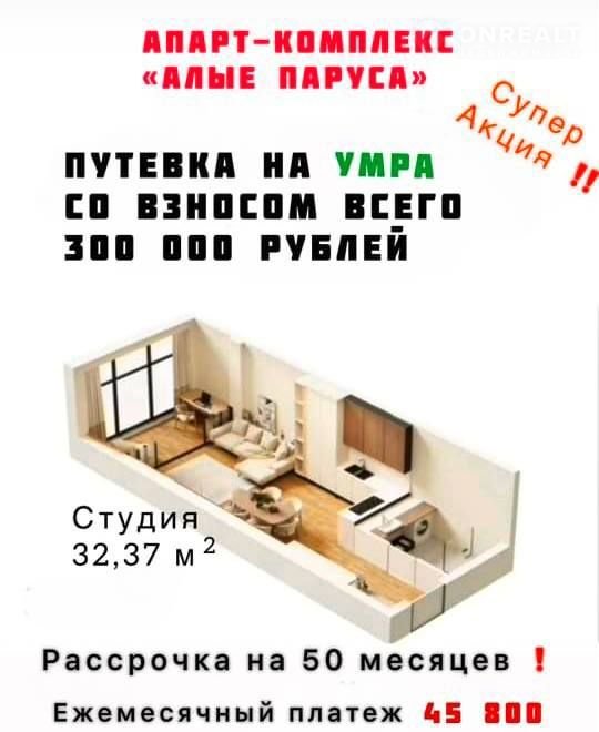 Квартира студия, 32.4 м2, этаж 2 / 8, на продажу сельское поселение Карабудахкент