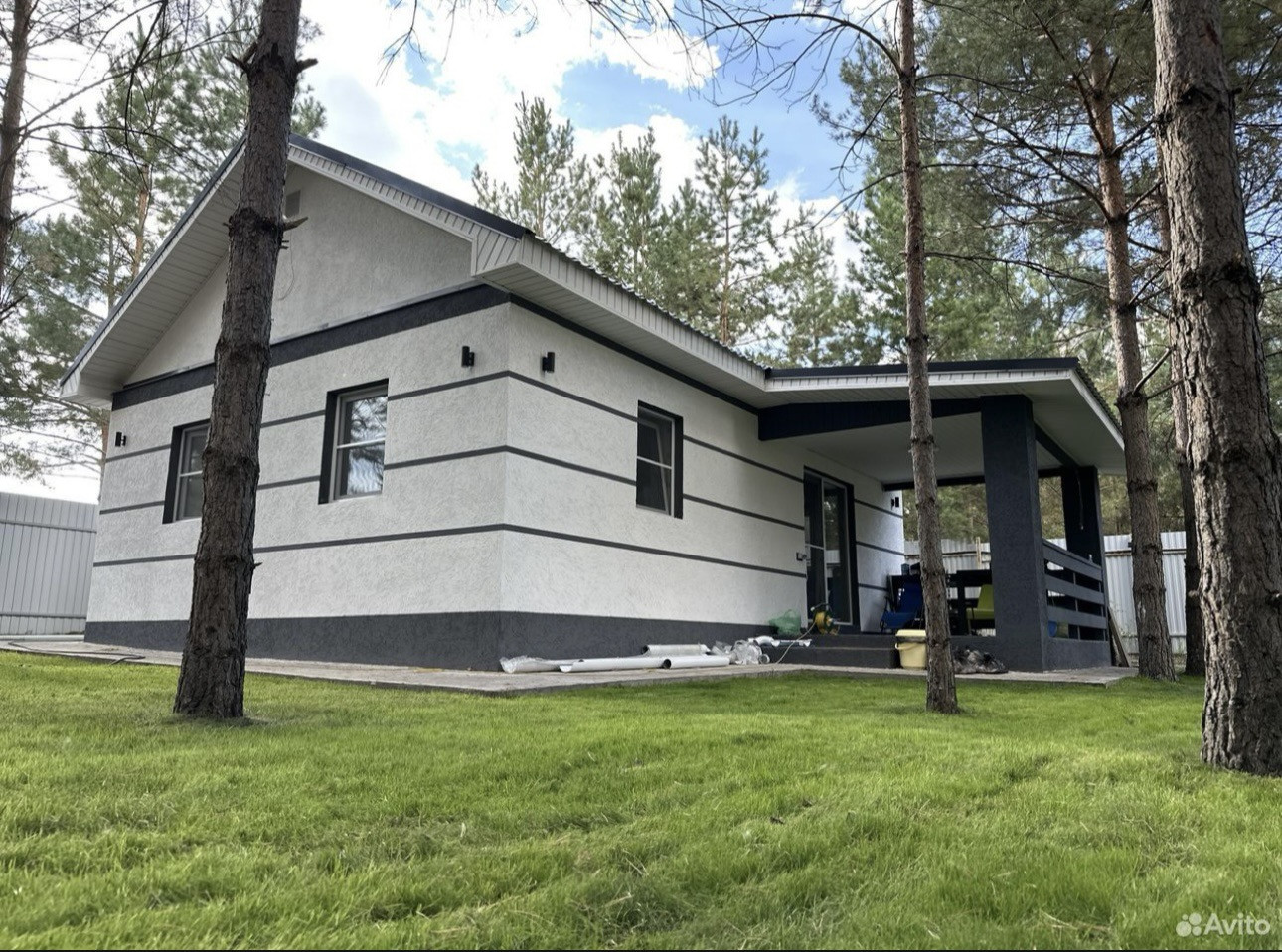Продается новый дом 68,5 кв.м по периметру с верандой на участке 6 соток. Дом с черновой отделкой, подключен к электричеству, сделаны канализация септик, скважина вода, забор, парковка, отмостки. Можно подключить газ.