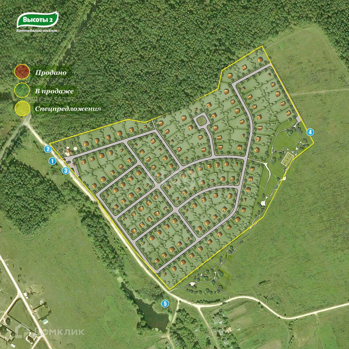 Поселок находится в окружении лесного массива, здесь чистый воздух, много грибов и ягод. Недалеко находится озеро и река Лужа. В поселке все коммуникации: электричество, газ, водопровод, внешнее ограждение, КПП с электрическим шлагбаумом и пропускной системой, парковки, детский городок, спортивная площадка, прогулочные зоны и места для отдыха, также в поселке будет работать Wi-Fi.