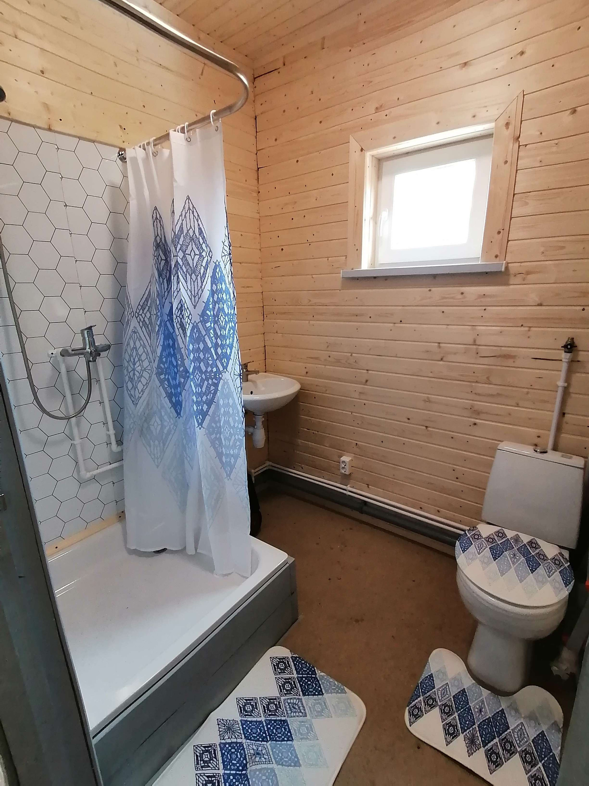Канализация утеплина, положен самогреющий кабель, подключена к центральным сетям