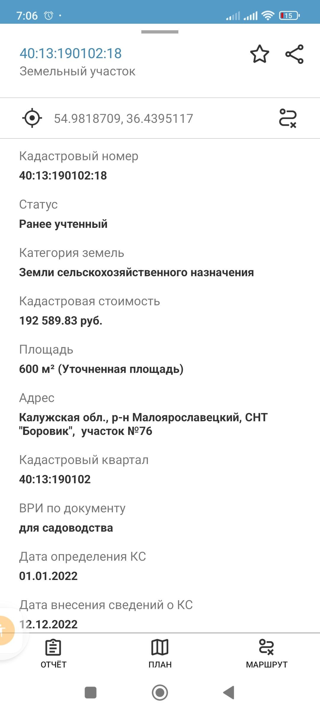 Площадь участка 6 сот.