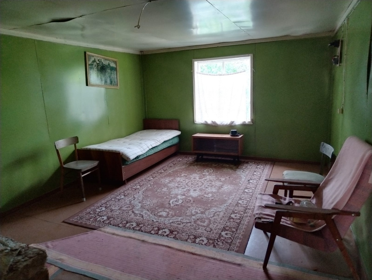 Печное отопление, ленточный фундамент, материал стен - брус, обшит вагонкой, крыша железная. На участке есть колодец, баня, хозпостройка с кессоном