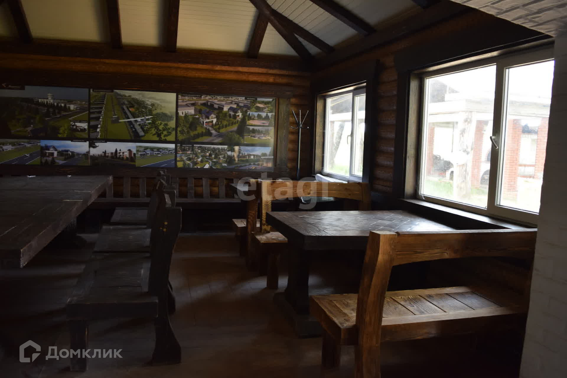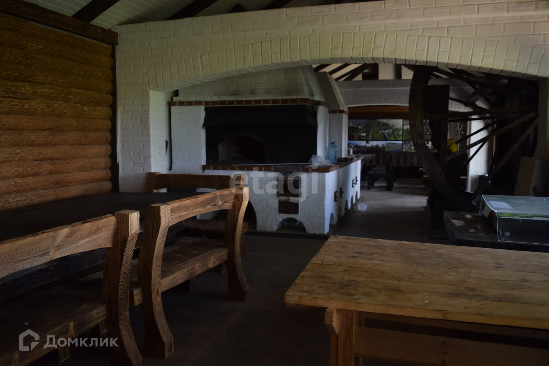 На территории расположены два деревянных дома площадью 118 кв. м каждый, один из которых оснащен двумя русскими печами, а другой идеально подходит для семинаров и конференций. Отдельное помещение для кухни с холодильной камерой и холодильными ларями. Также есть барбекю с красивой русской печью и просторной летней верандой. Несколько гостевых домов.