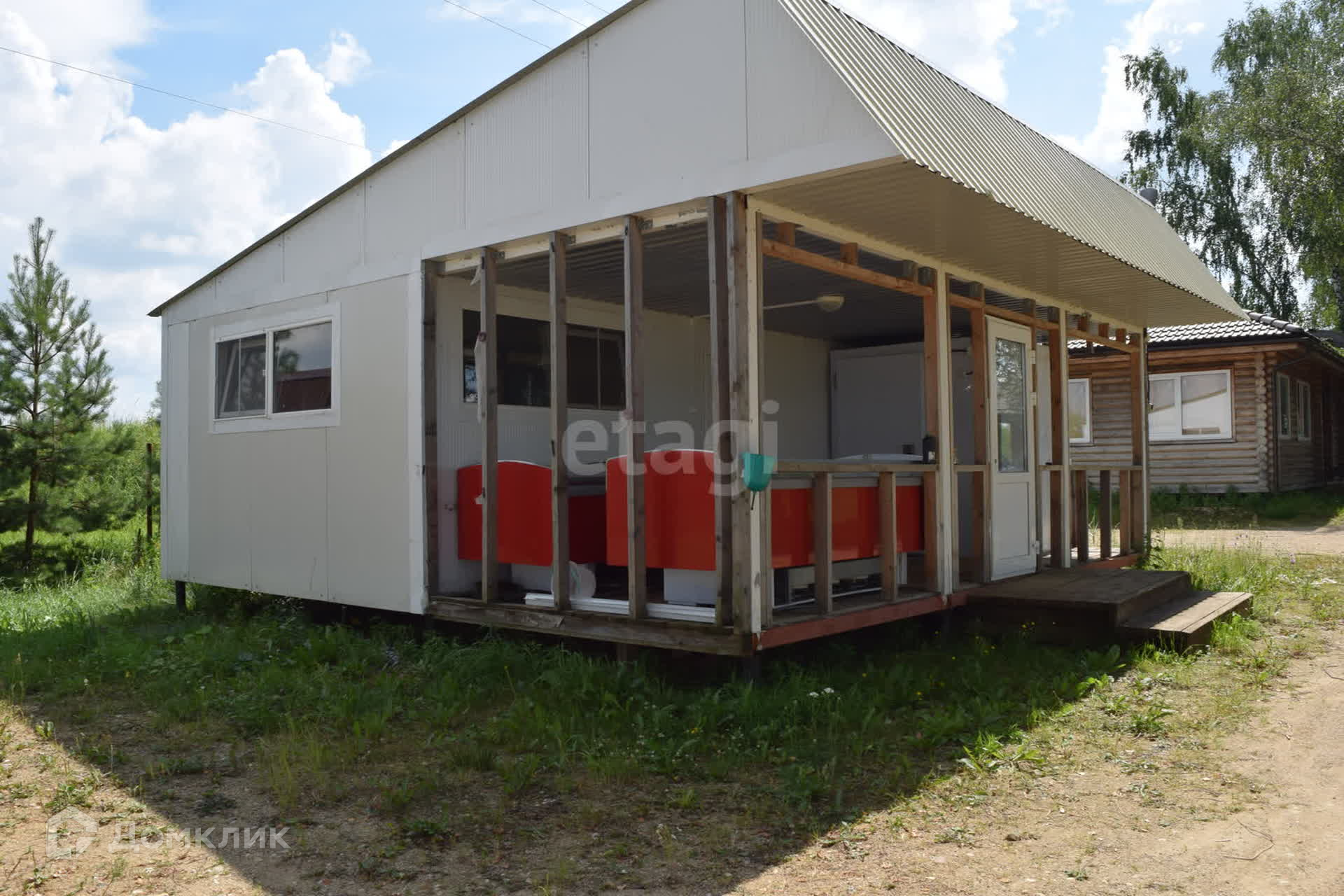 На территории расположены два деревянных дома площадью 118 кв. м каждый, один из которых оснащен двумя русскими печами, а другой идеально подходит для семинаров и конференций. Отдельное помещение для кухни с холодильной камерой и холодильными ларями. Также есть барбекю с красивой русской печью и просторной летней верандой. Несколько гостевых домов.