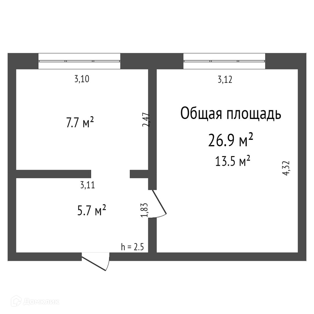 Общая площадь 26.9 м2