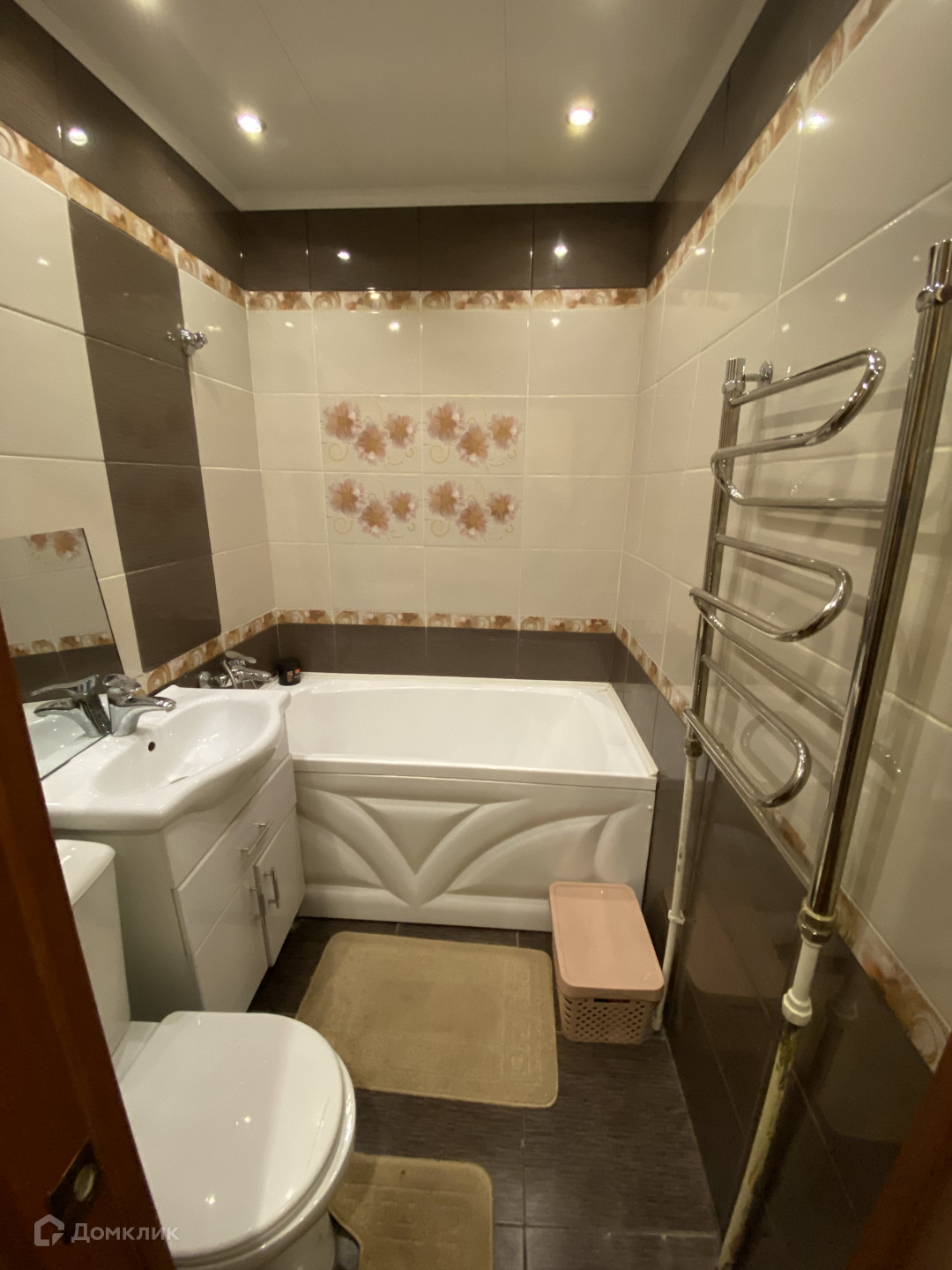 Натяжные потолки с точечными светильниками в ванной, кухне и коридоре. Новый линолеум в зале и комнате.