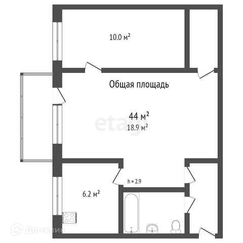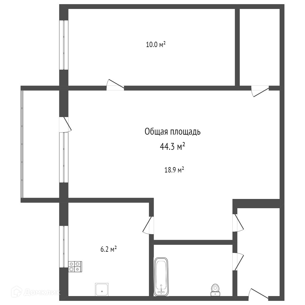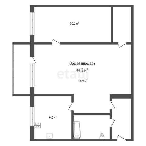 Общая площадь 44.3 м2