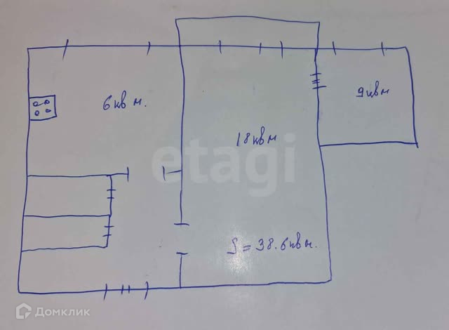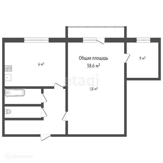 Общая площадь 38.6 м2