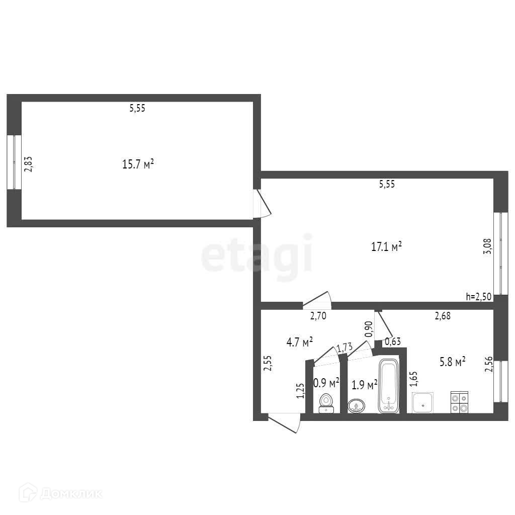 Общая площадь 46.1 м2