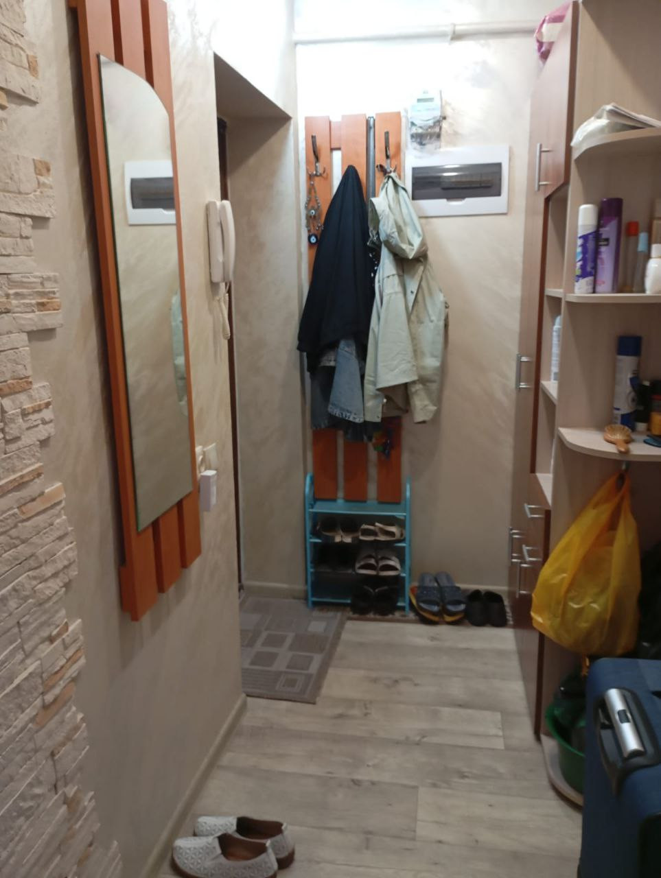 В квартире сделан капитальный ремонт: установлена новая электрика, полностью заменены полы, окна пластиковые, сантехника обновлена, стены выровнены, покрыты венецианской штукатуркой, искуственным камнем и качественными обоями.