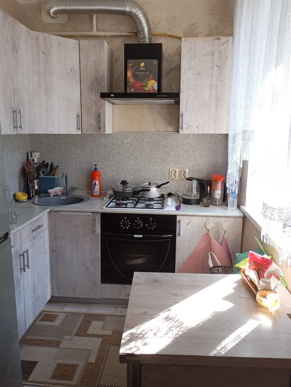Кухня встроенная изготавливалась на заказ, остается новым хозяевам.