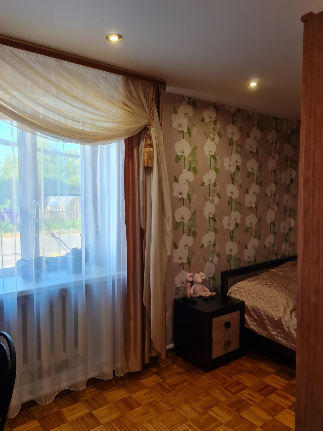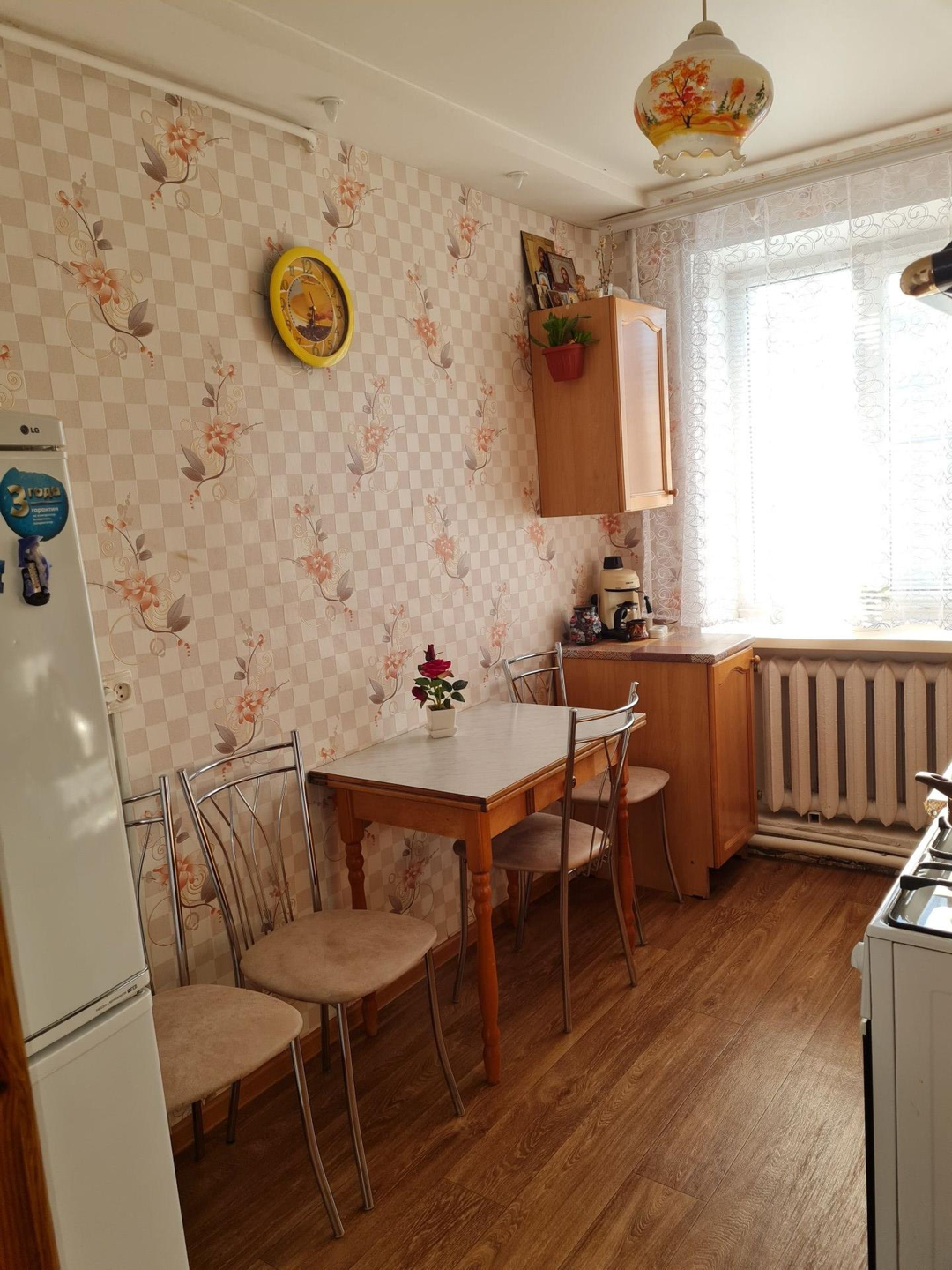 3-х комнатная квартира, комнаты: 1 изолированная, 2 смежные. Отопление центральное. Рядом с домом ухоженный огород с теплицей, большая сарайка и место под гараж. Цена без торга.